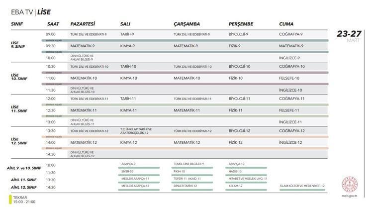 Toplam olarak haftada 40 saat ders görülmektedir. çarşamba günü eba uzaktan eğitim 10 sınıf lise ders programı. Yeni meb müfredatı kapsamında lise 10. Saat 11 30 hadis.