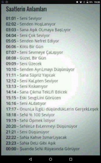 11 11 saatinin anlamı sana sürprizi var demektir. Acaba saatlerin anlamı yıllara göre değişir mi. çünkü sevdiğin kişi seni sürekli ailesine anlatıp gelecek hayallerini paylaşıyor. Ya da daha önceden gitmiş olabilir.