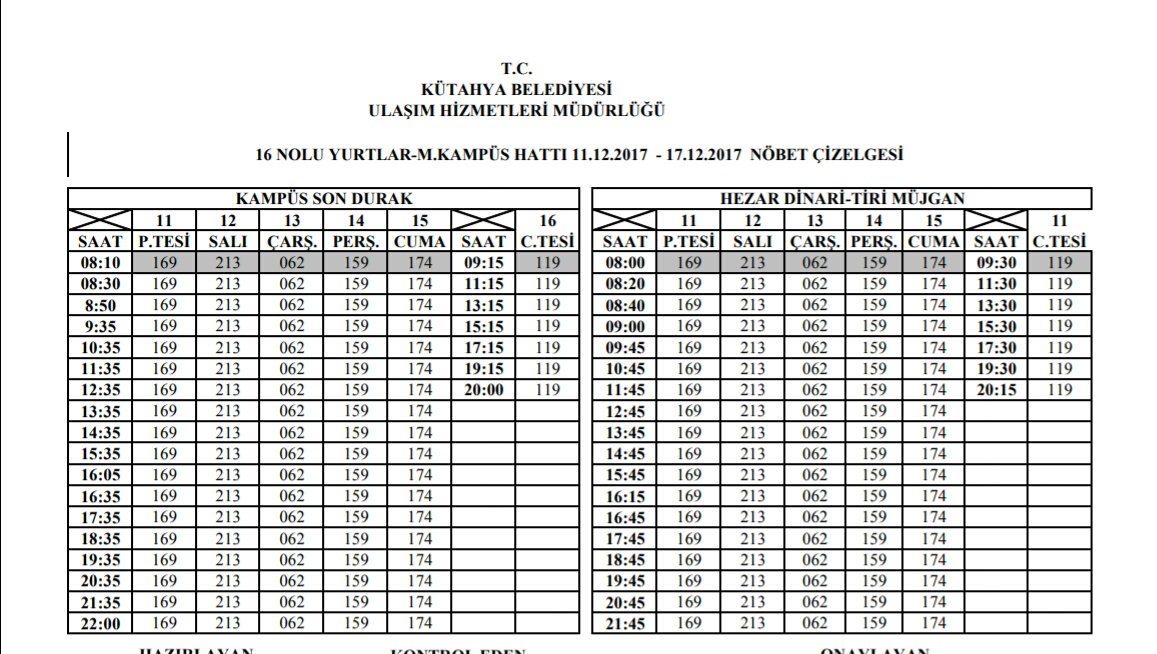 159 Belediye Otobüs Saatleri