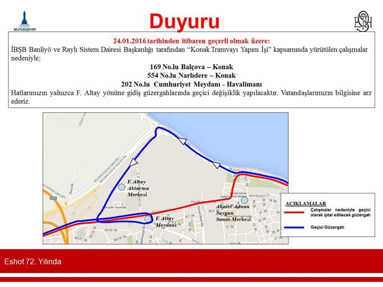 Konak her gün çalışıyor. 72 saatleri ve i̇zmir belediye otobüsleri. İzmir büyükşehir belediyesi eshot genel müdürlüğü yolcu memnuniyetine odaklı ekonomik emniyetli konforlu sürekli ve güvenilir toplu taşımacılık hizmetini gerçekleştiren kurumdur. 72 eshot 72 otobüs hattının ilk durağı i̇şçievleri olup son durağı konak durağıdır.