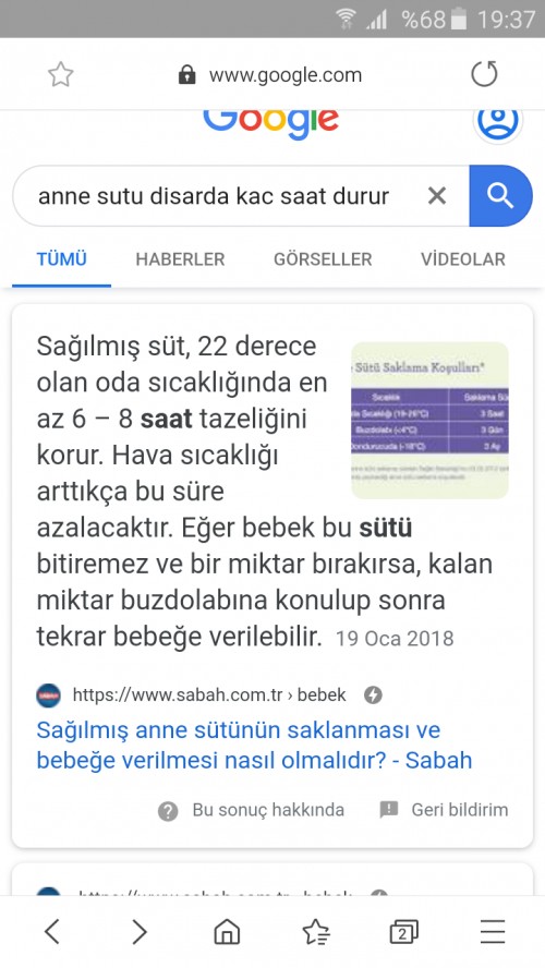 Anne Sutu Disarda Kac Saat Durur
