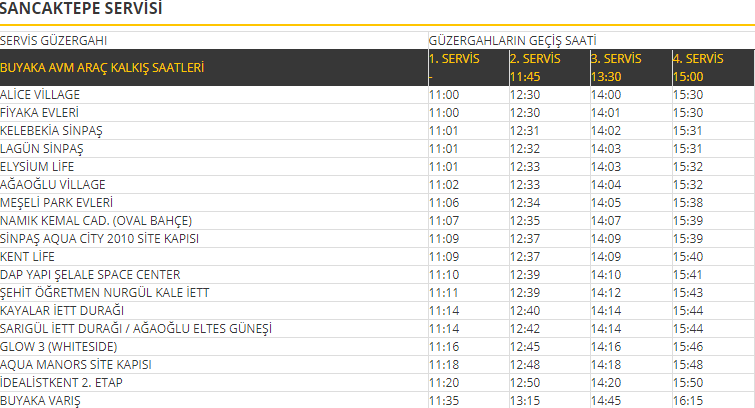 Buyaka Servis Saatleri