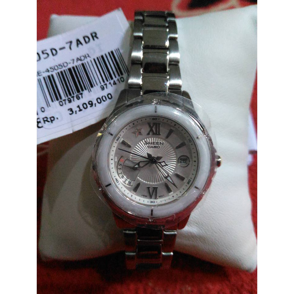 Box kartu garansi resmi casio buku manual buku. Di sejumlah toko jam yang ada di indonesia casio sheen original yang paling murah dijual sekitar rp 1 1 jutaan sedangkan yang paling mahal harganya bisa mencapai rp 3 9 jutaan. Made in japan kondisi barang. Jam tangan wanita casio sheen she 3028d.