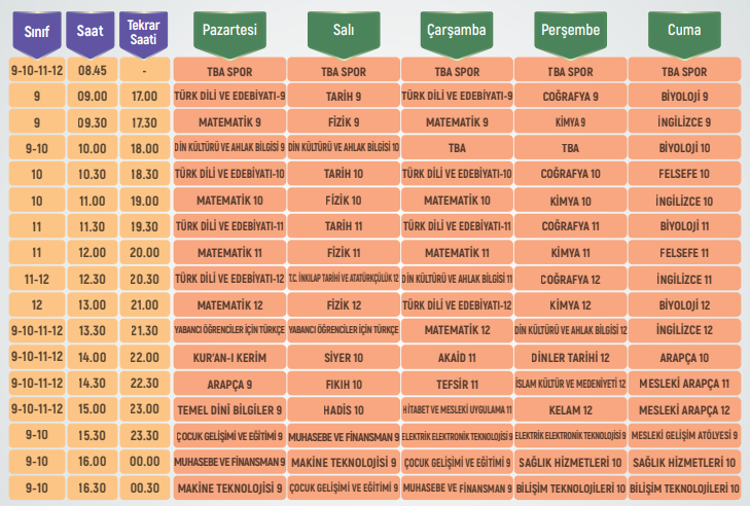 Eba Tv Ders Saatleri