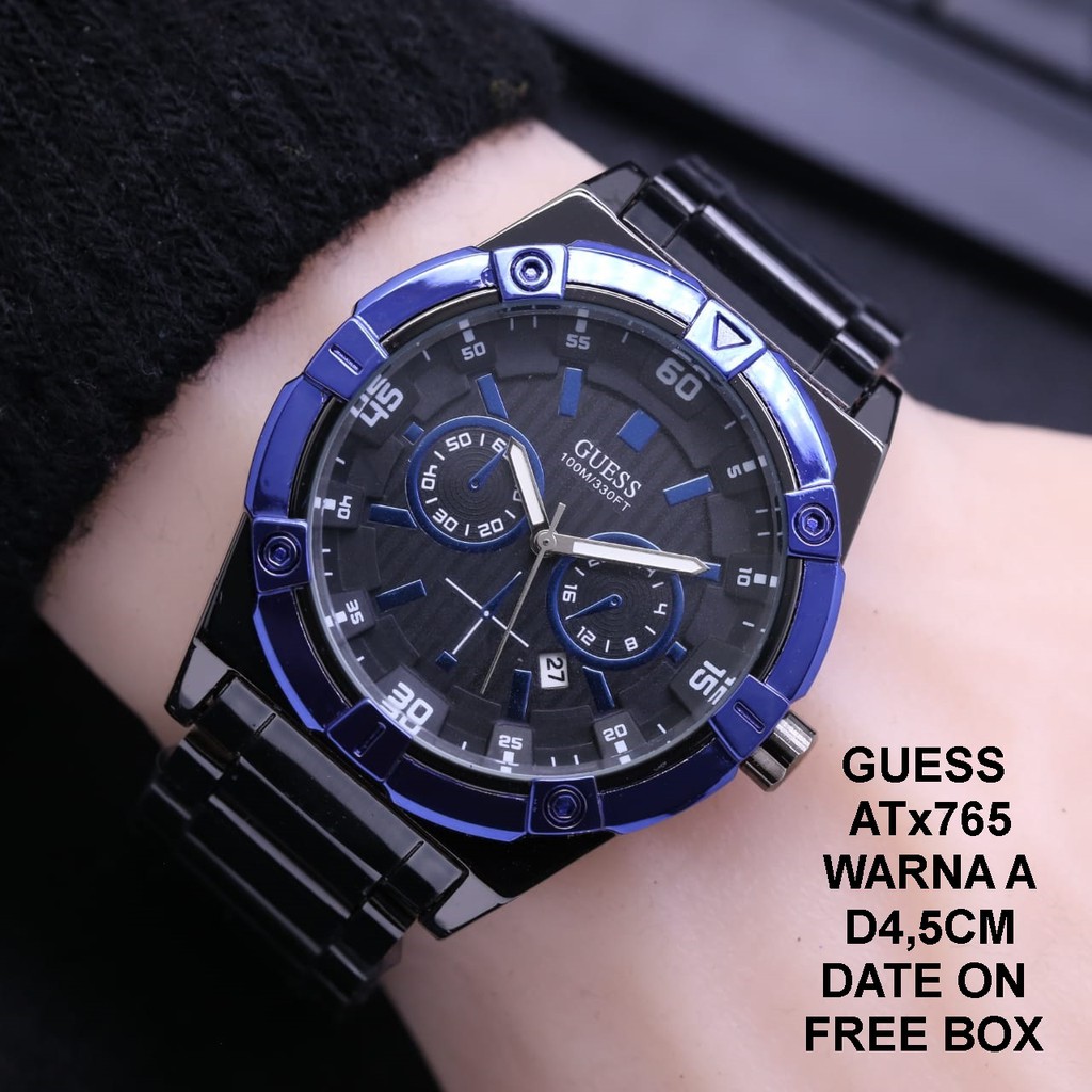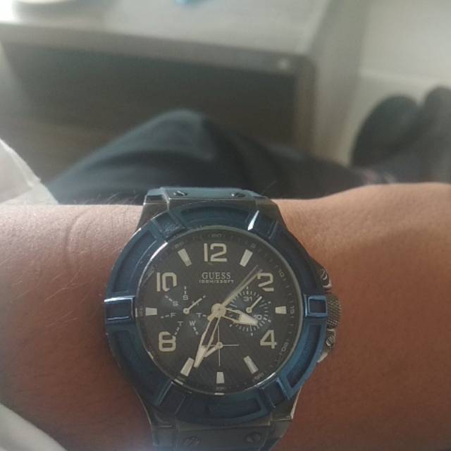 Guess saat 100m 330ft. Mens guess 100m waterpro watch stainless mans day date diver sport wristwatch. Watch shows cosmetic wear due to normal use. Guess waterpro quartz 100m 330ft water resistant stainless steel men s watch. Rain showering swimming.