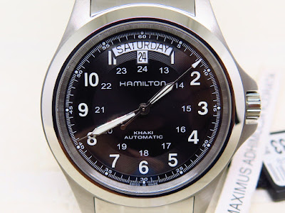 38mm matt stainless steel case three hand display dark dial with light luminescent numerals indexes showing hours and minutes durable nato strap. Shop for khaki king series automatic men s watch h64455533 by hamilton at jomashop see price in cart.